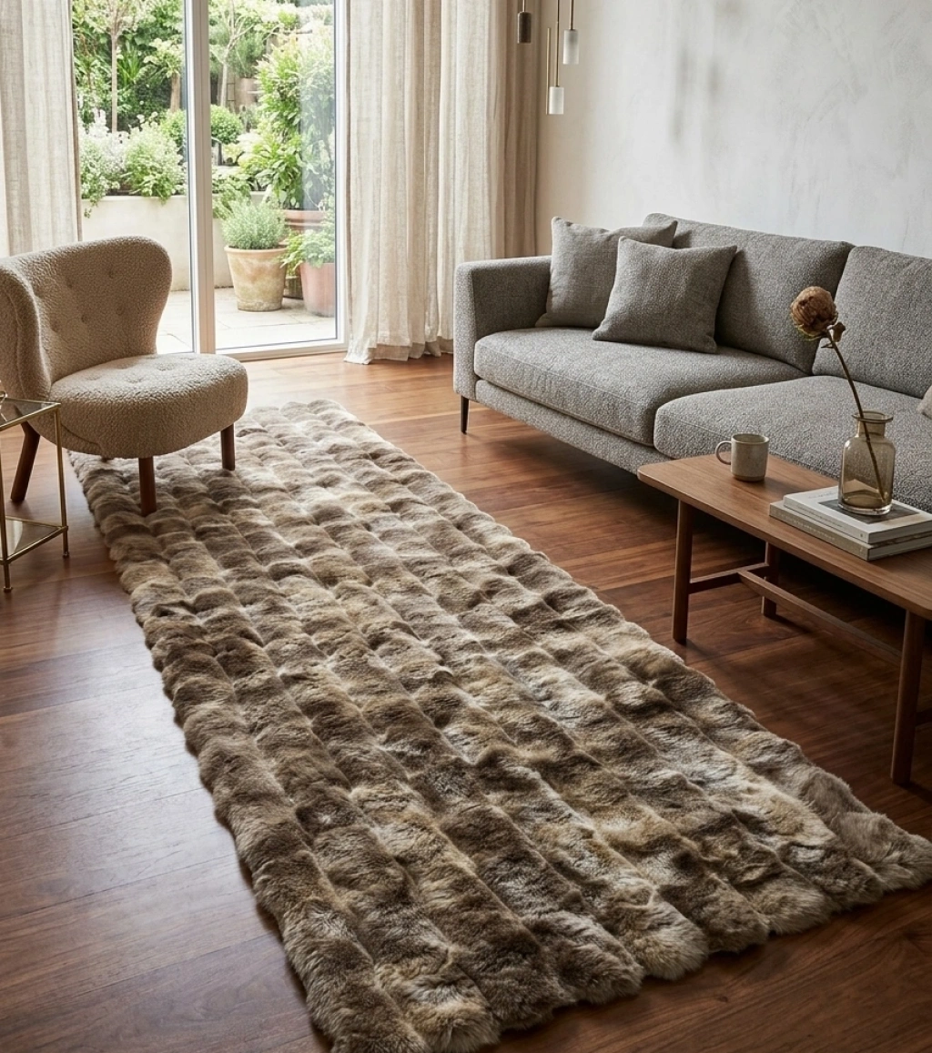 Carpet Dekor İthal Bubble Yumuşak Suni Tavşan Tüyü Halı Kahve-Beyaz