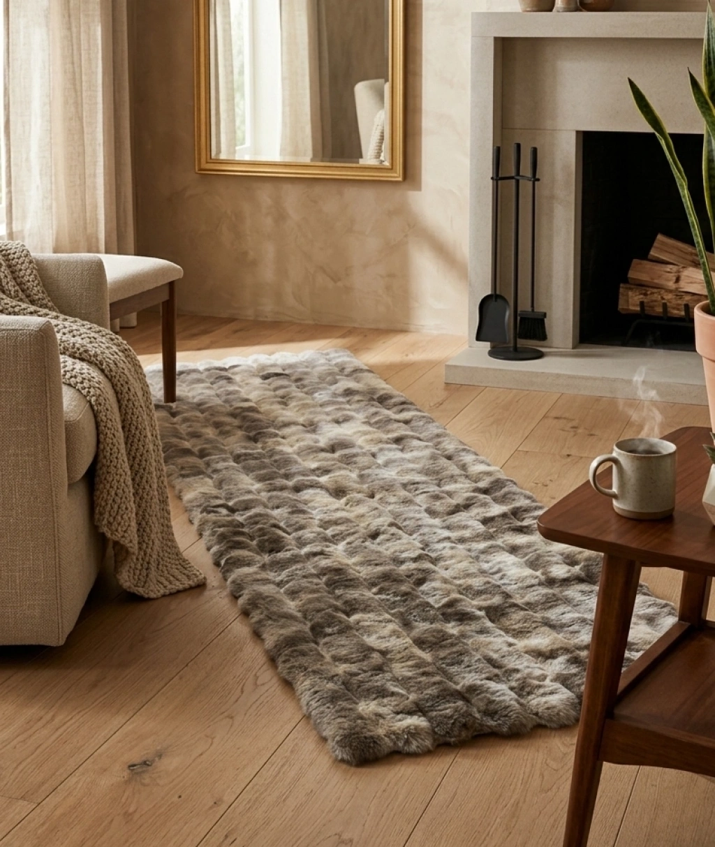 Suni tavşan tüyü halı: Üstün kaliteli suni tavşan tüyü, süper yumuşak ve ipeksi bir dokunuş sağlar. Kabarık ve tüylü halımızla yatak odanızı veya oturma odanızı rahat konforlu alanlar yaratın. Havalı 3 boyutlu baloncuk şekli, kar topu gibi hafif Sade ama monoton değil, sıcak ve rahat bir atmosfer yaratmak kolay.
