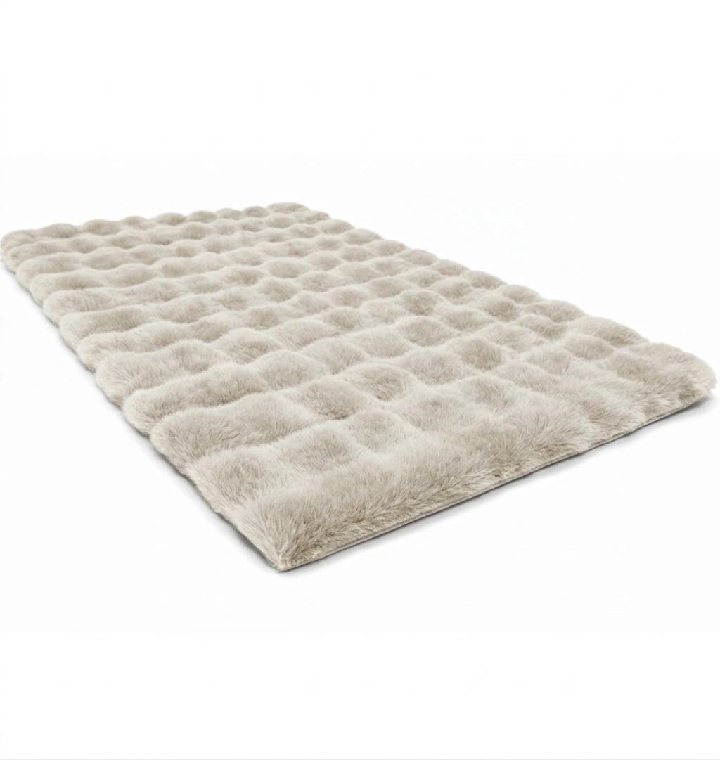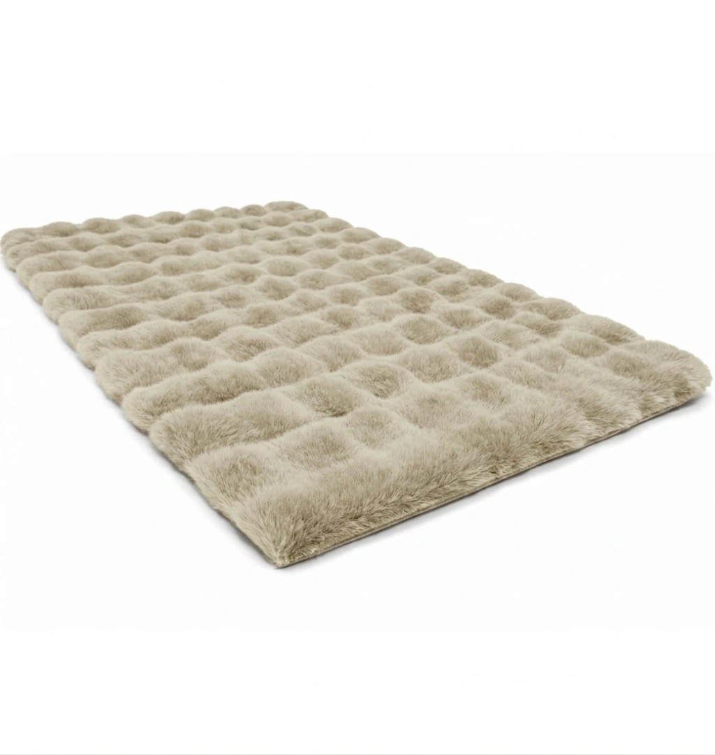 Suni tavşan tüyü halı: Üstün kaliteli suni tavşan tüyü, süper yumuşak ve ipeksi bir dokunuş sağlar. Kabarık ve tüylü halımızla yatak odanızı veya oturma odanızı rahat konforlu alanlar yaratın. Havalı 3 boyutlu baloncuk şekli, kar topu gibi hafif Sade ama monoton değil, sıcak ve rahat bir atmosfer yaratmak kolay.