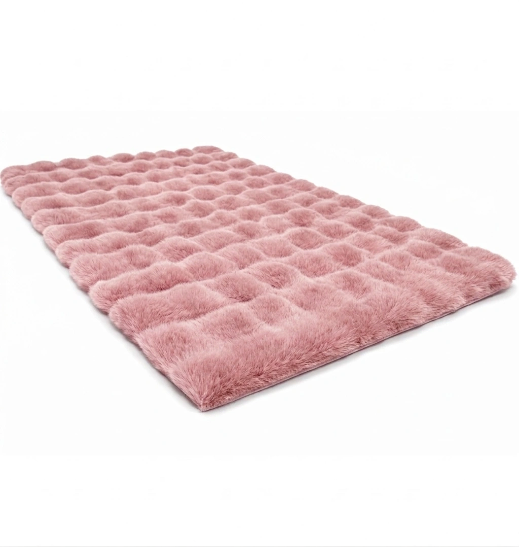 Suni tavşan tüyü halı: Üstün kaliteli suni tavşan tüyü, süper yumuşak ve ipeksi bir dokunuş sağlar. Kabarık ve tüylü halımızla yatak odanızı veya oturma odanızı rahat konforlu alanlar yaratın. Havalı 3 boyutlu baloncuk şekli, kar topu gibi hafif Sade ama monoton değil, sıcak ve rahat bir atmosfer yaratmak kolay.