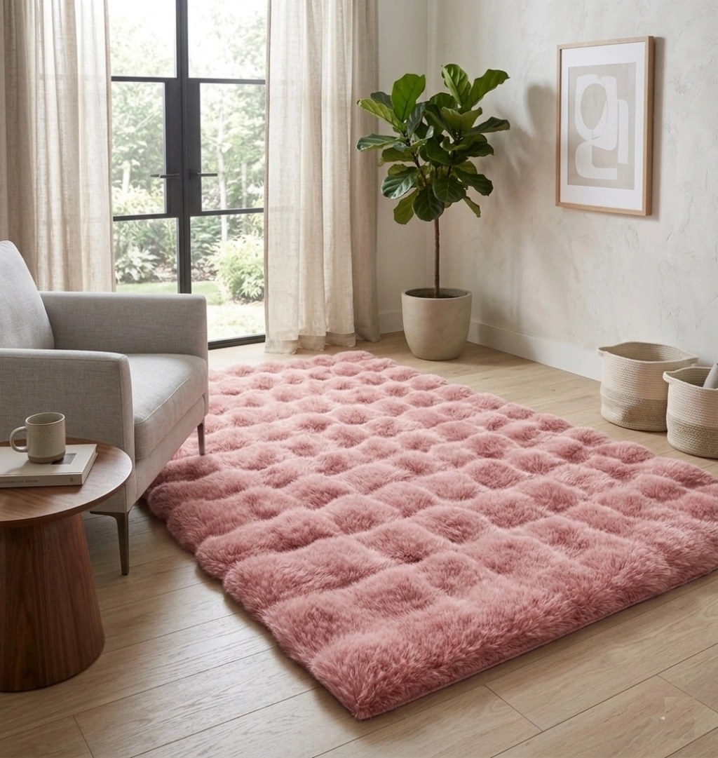 Carpet Dekor İthal Bubble Yumuşak Suni Tavşan Tüyü Halı Pudra-Pembe