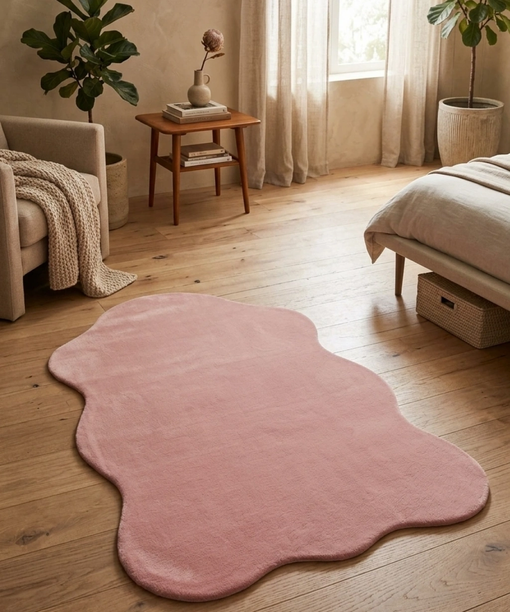 Carpet Dekor İthal Peluş Yumuşak Dekoratif Halı Pembe
