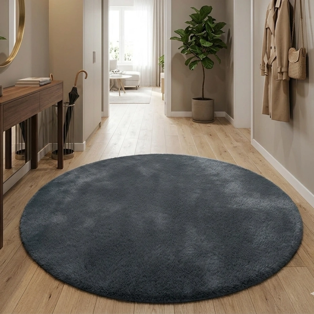 Carpet Dekor İthal Peluş Yumuşak Dekoratif Halı Yuvarlak Antrasit