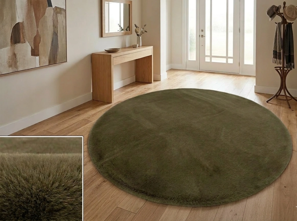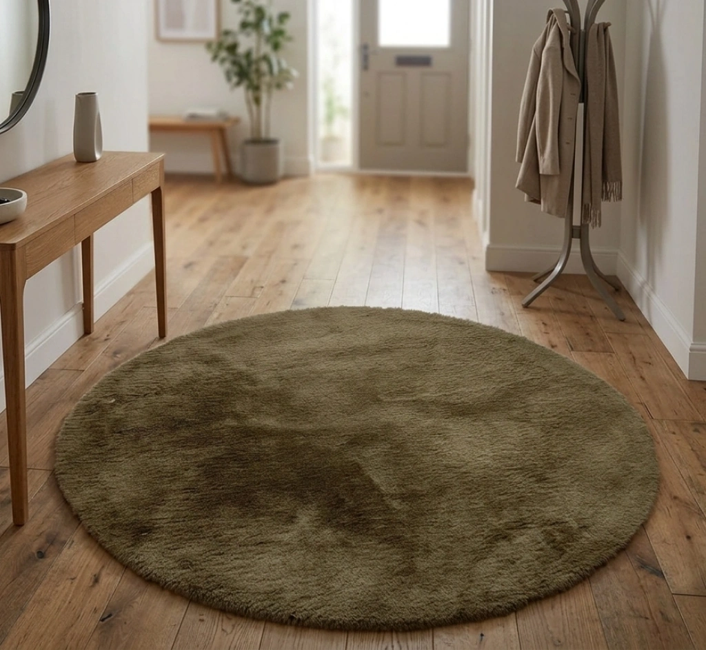 Carpet Dekor İthal Peluş Yumuşak Dekoratif Halı Yuvarlak Kahverengi