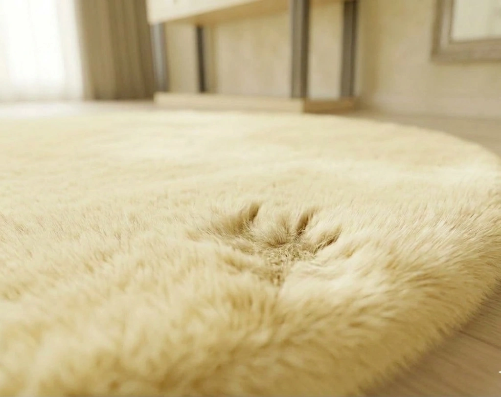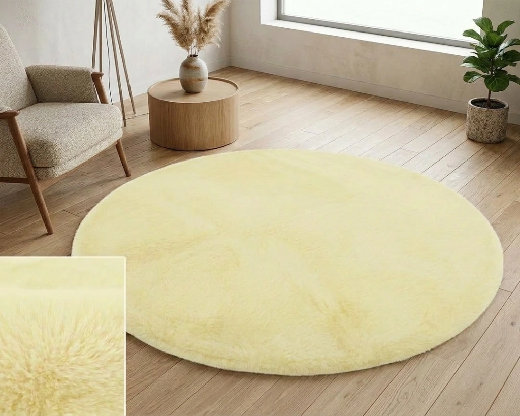 Carpet Dekor İthal Peluş Yumuşak Dekoratif Halı Yuvarlak Krem Rengi